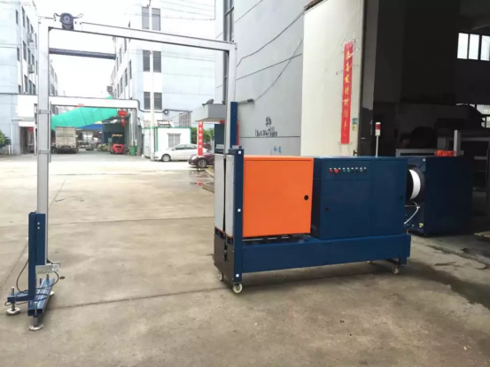 MH-107B自动托盘穿箭打包机是一款专门针对于栈板捆包而设计的一款打包机,该机具有伸缩性导轨,当机器检测到与物品需要打包时,导轨会自动伸出,与原有的框架形成一个封闭式的带道,之后进行自动打包,当一道作业完成之后,导轨会自动退回到打包机机身下面,然后由输送设备将物品输送到下一工位。